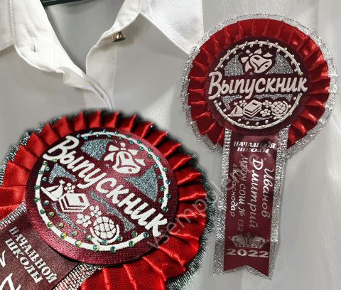 Характеристики "- Значок-Розетка начальной школы 2026 именная, 3d, бордовый(20% предоплата)"